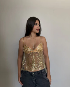 Com tecido transparente super leve e aplicação de paetês que brilham de verdade, essa bata entrega um visual moderno, sofisticado e cheio de personalidade. O decote em V profundo valoriza o colo, enquanto a modelagem soltinha traz conforto e movimento na medida certa.